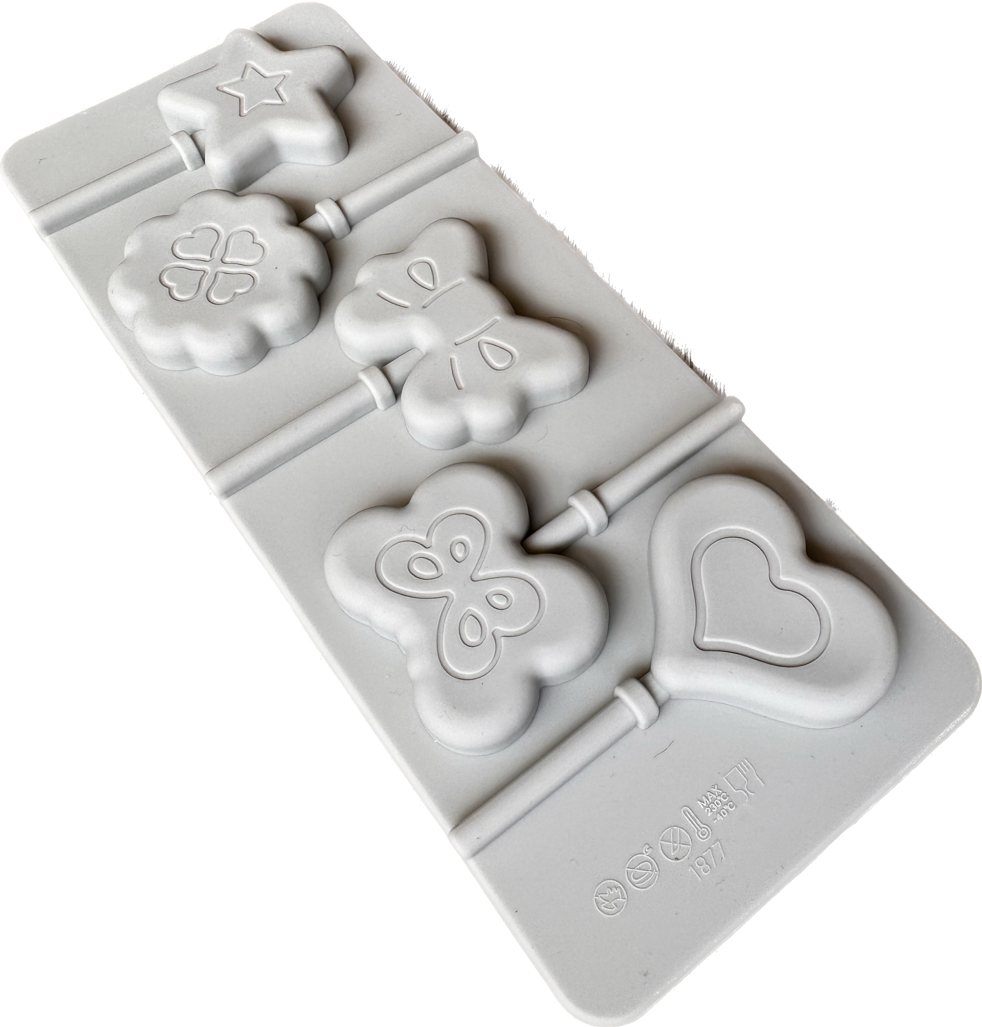 - Dimensiones: El molde cuenta con 5 cavidades, todas con forma 5 formas diferentes